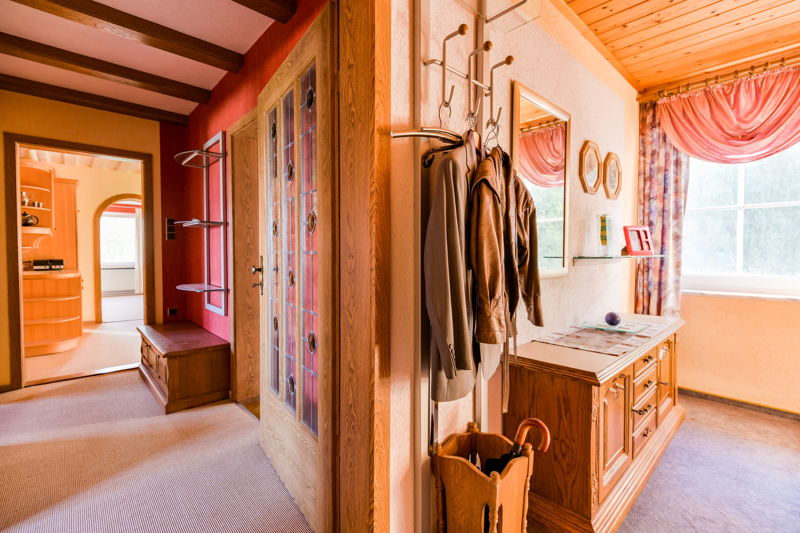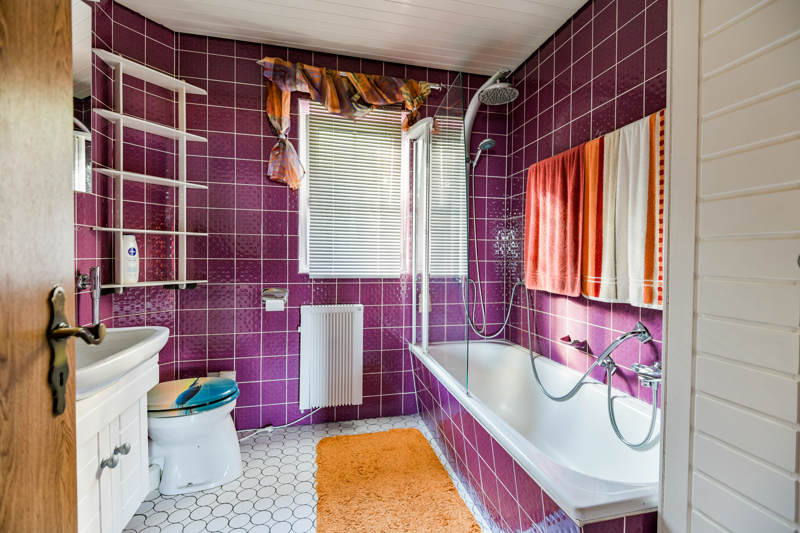 Von der Diele aus gelangen Sie sowohl zum Kinderzimmer als auch zum direkt angrenzenden Elternschlafzimmer. Gegenüberliegend befindet sich das Bad mit Wanne.