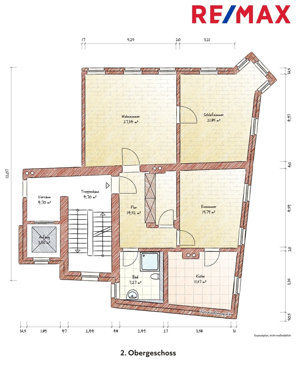 Auf einer Fläche von ca. 98 m² und unterteilt sich folgendermaßen: