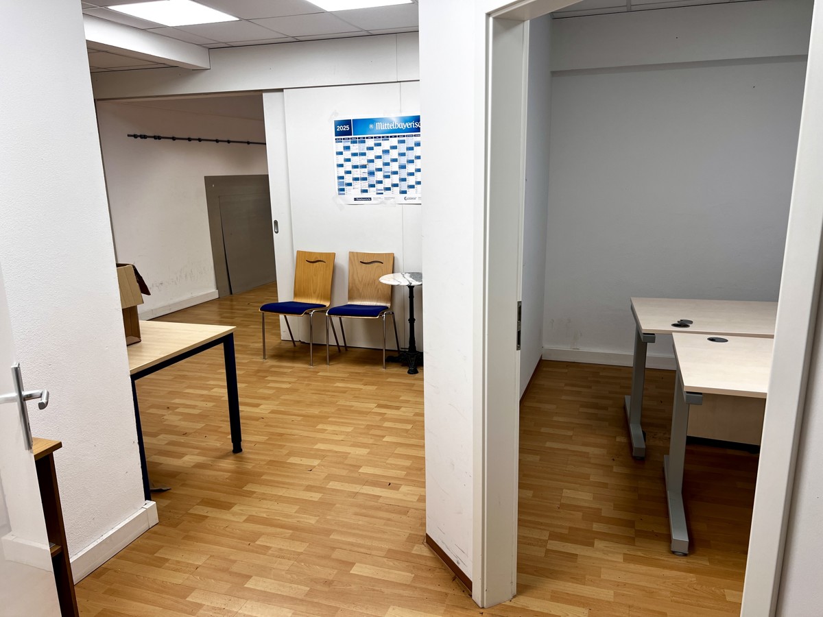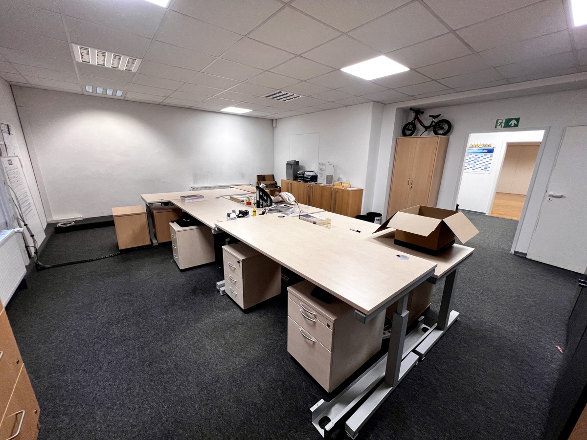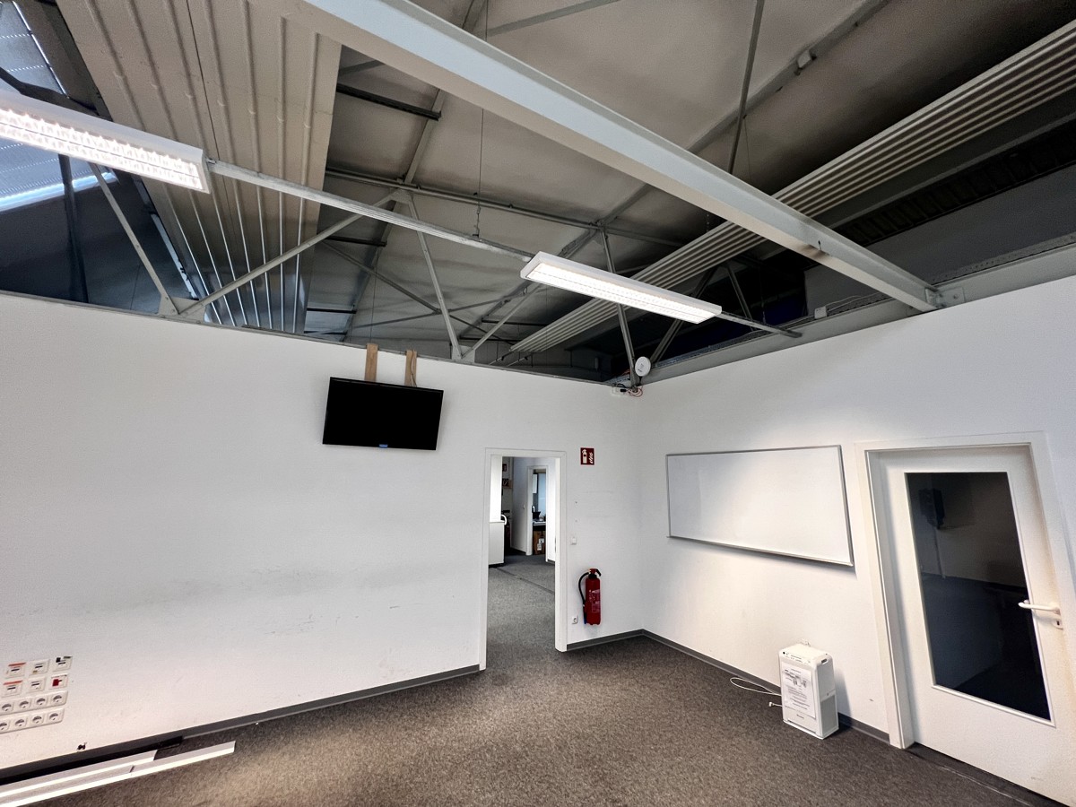 Die Raumaufteilung ist dank flexibler Leichtbauwände (Rigips) individuell anpassbar – ideal für projektbezogene Nutzung oder temporäre Teams. Auch eine Werkstattnutzung wäre hier denkbar. Dieser Bereich wurde mit Teppichboden versehen und verfügt zusätzlich über eine zweite Küche, was insbesondere bei mehreren Nutzern oder Teamstrukturen vorteilhaft ist.