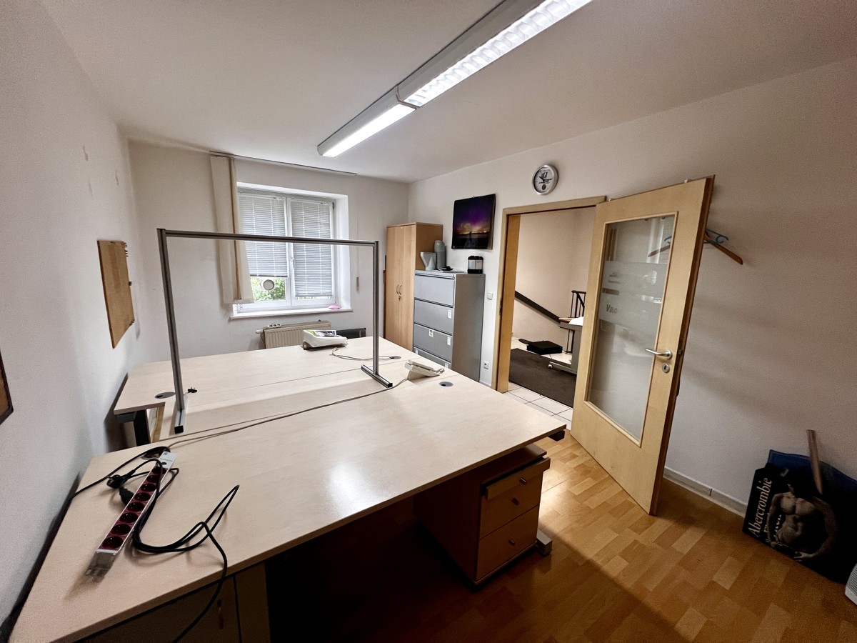 Im Obergeschoss des Hauptgebäudes stehen derzeit sechs helle Büroräume zur Verfügung, verteilt auf ca. 175 m². Zwei separate WC-Anlagen sind ebenfalls vorhanden. Die Räume sind mit einem pflegeleichten Laminatboden ausgestattet, die Fenster wurden im Jahr 2000 durch zweifach verglaste Kunststoffelemente ersetzt und sorgen für ausreichend Tageslicht.