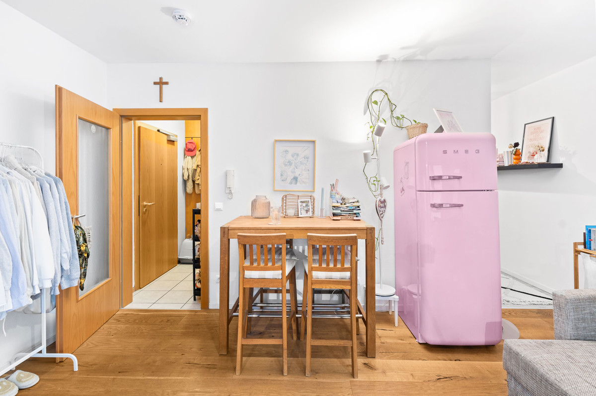 Mit 1,5 Zimmern und einem modernen Badezimmer verspricht diese Wohnung ein behagliches Wohnambiente. Ein Highlight ist die Terrasse, die Ihnen einen wunderbaren Ort zum Entspannen und Genießen sonniger Tage bietet. In der stilvollen Einbauküche können Sie Ihre Kochkünste entfalten, während der Echtholzfußboden der Wohnung ein elegantes Flair verleiht.