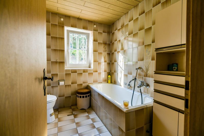 Von der Diele aus gelangen Sie sowohl zum Kinderzimmer als auch zum direkt angrenzenden Elternschlafzimmer. Gegenüberliegend befindet sich das Bad mit Wanne.