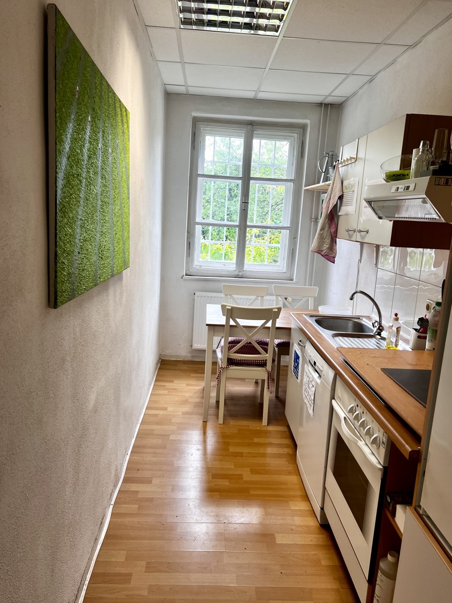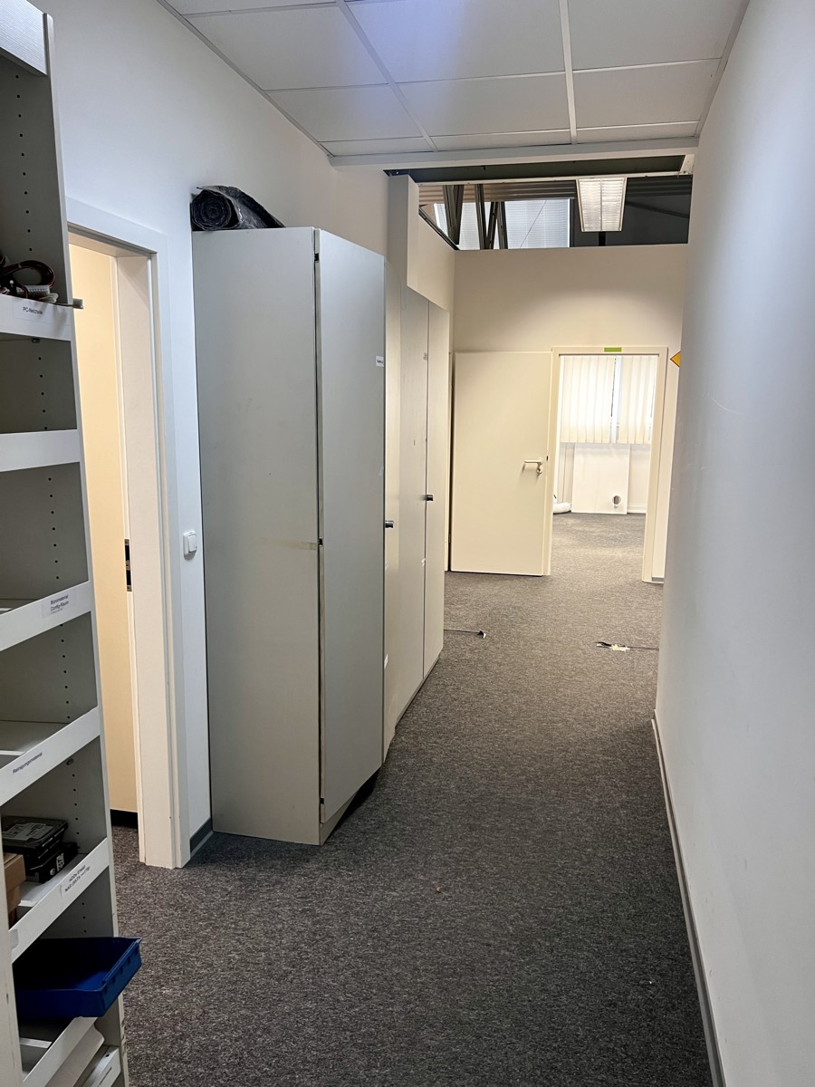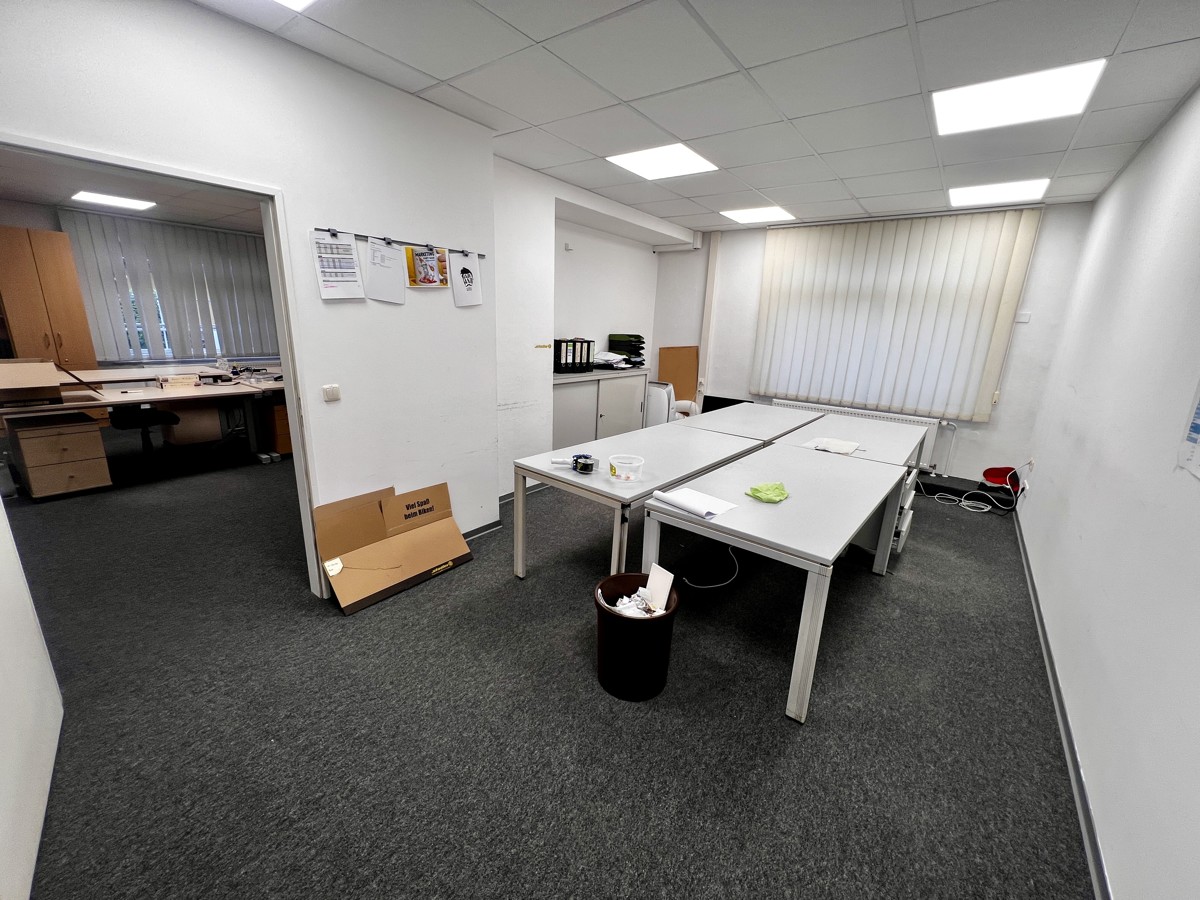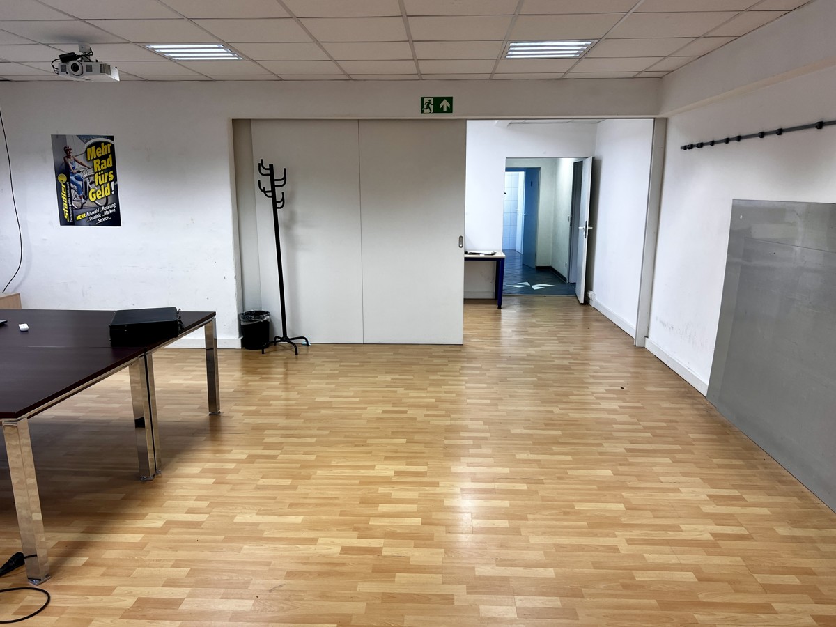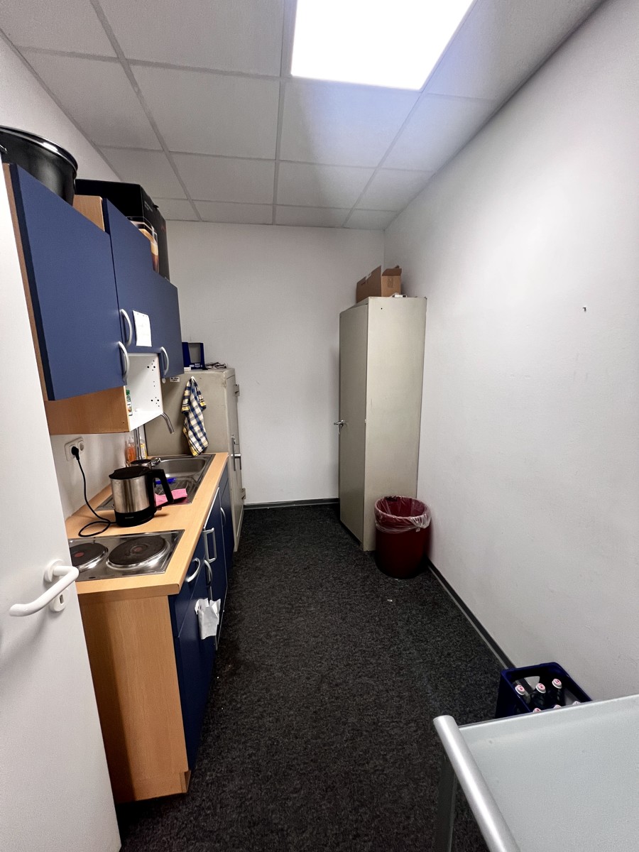 Die Raumaufteilung ist dank flexibler Leichtbauwände (Rigips) individuell anpassbar – ideal für projektbezogene Nutzung oder temporäre Teams. Auch eine Werkstattnutzung wäre hier denkbar. Dieser Bereich wurde mit Teppichboden versehen und verfügt zusätzlich über eine zweite Küche, was insbesondere bei mehreren Nutzern oder Teamstrukturen vorteilhaft ist.