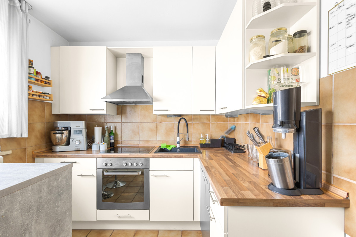 Die Küche ist funktional geschnitten und bietet ausreichend Platz.