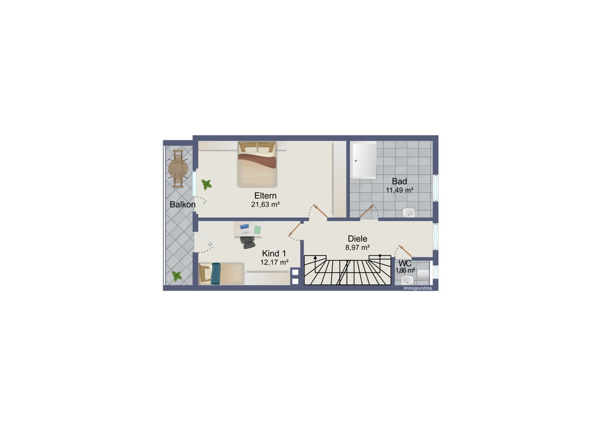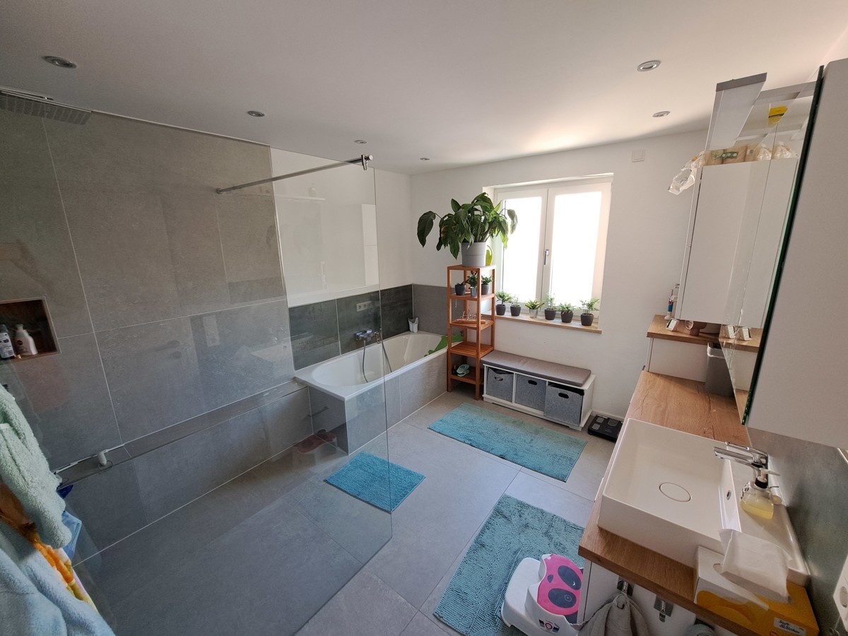 OG - großes Bad mit begehbarer Dusche, Badewanne, Gäste WC, 2 Zimmer, Balkon,
