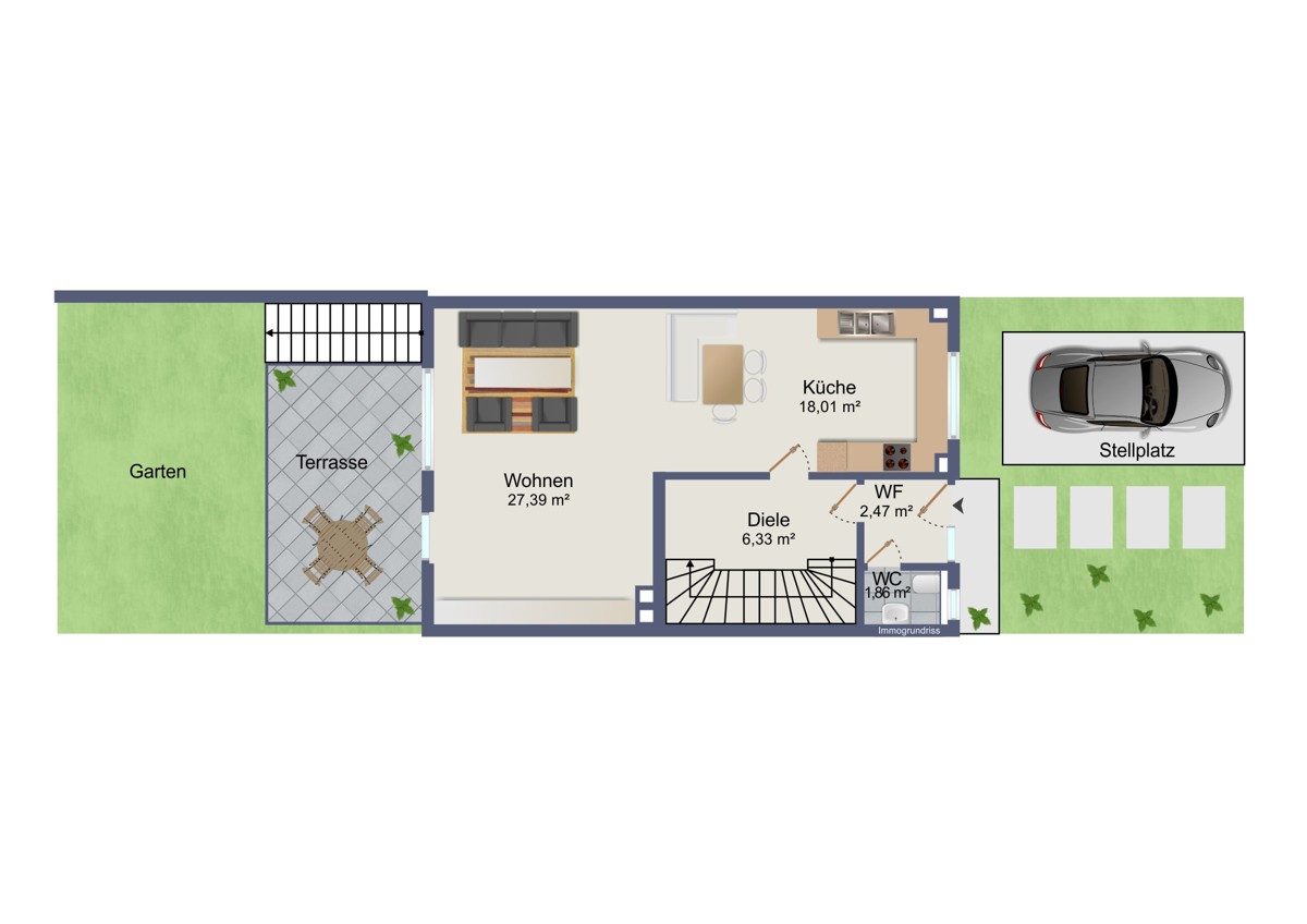 EG - Wohnküche, großzügiger Wohnbereich, Terrasse, Garten, Gäste WC