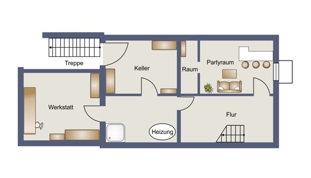 KG - 4 Kellerräume (Werkstatt, Kellerraum, Durchgangskeller, Heizungsraum)