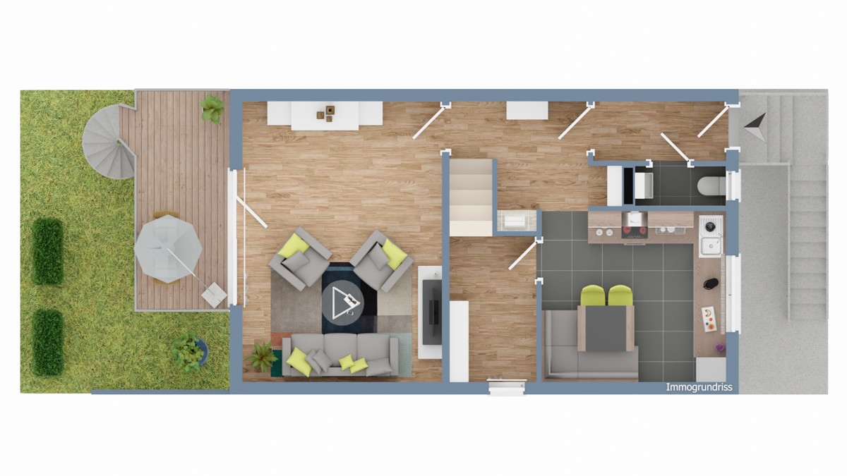 - Reiheneckhaus mit Terrasse und Gartenanteil (angebunden über eine Wendeltreppe)