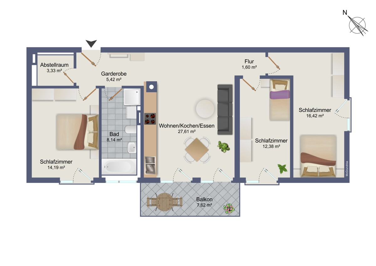 “Modernes Wohnen mit Stil – 4-Zimmer-Komfortwohnung mit Balkon, Fußbodenheizung & Garage”